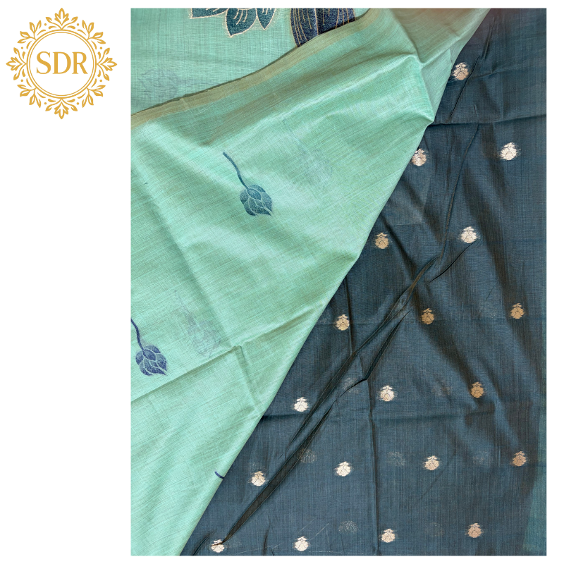 Work: Intricate Swan and Lotus Weaving with Zari Border