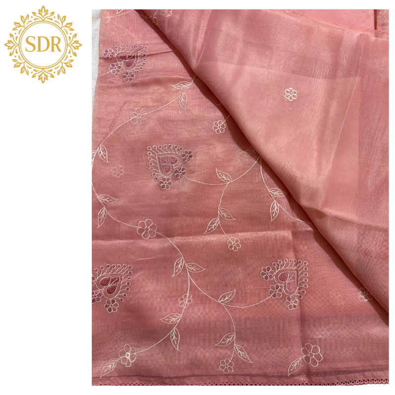 Radiate understated elegance with this Linen Tissue Saree, crafted from a premium linen blend infused with a subtle sheen of tissue for a graceful finish. The saree features delicate floral and heart motif embroidery in soft contrast tones, adding a charming touch to its sophisticated appeal. Lightweight and breathable, this saree is perfect for daytime celebrations, festive gatherings, and elegant casual occasions.