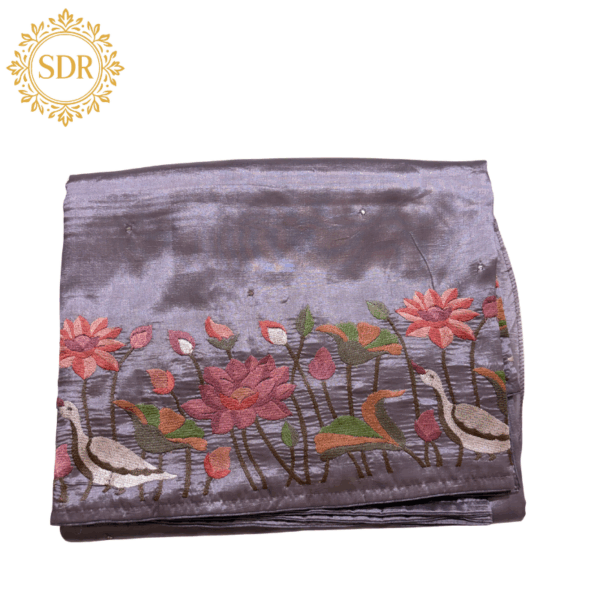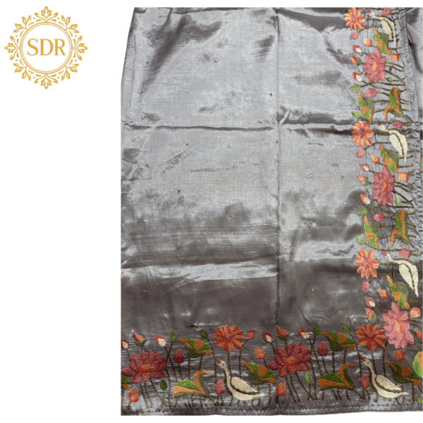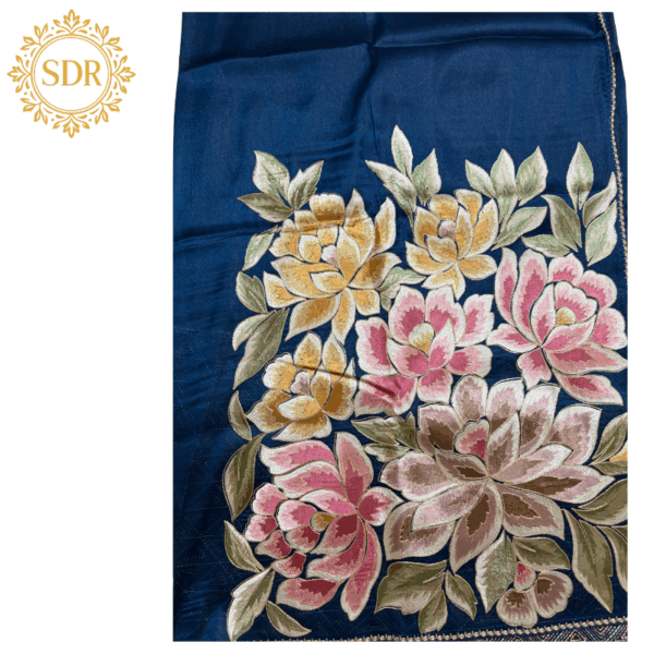 Elevate your ethnic wardrobe with this exquisite Pure Matka Silk Saree, featuring intricate Korean machinery work. The blue base is adorned with elegant floral embroidery, adding a vibrant and contemporary touch to its timeless appeal.