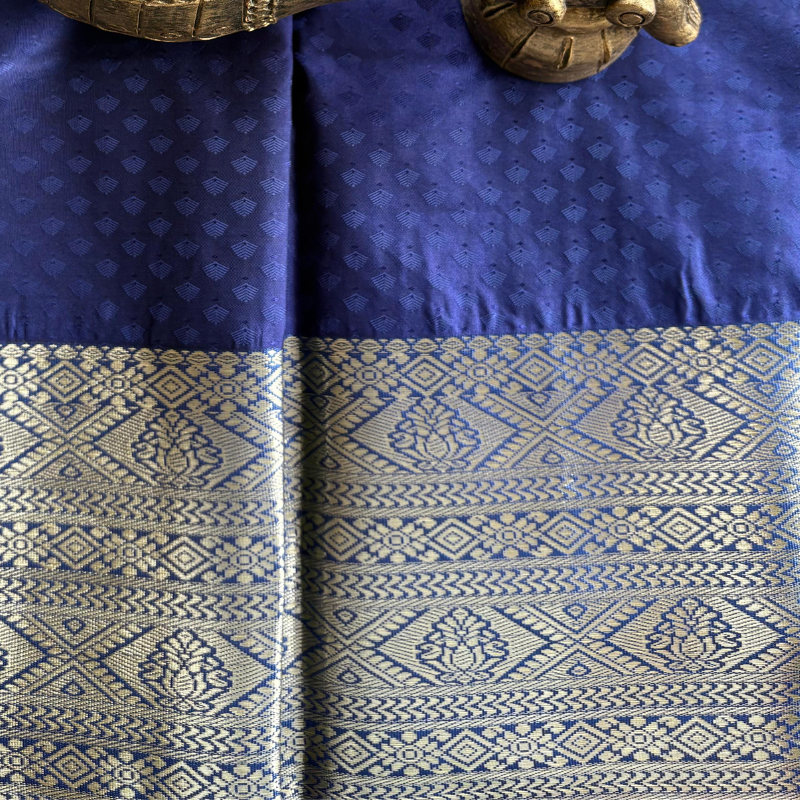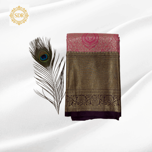 Border & Pallu : Contrasting zari border with detailed motifs and geometric patterns