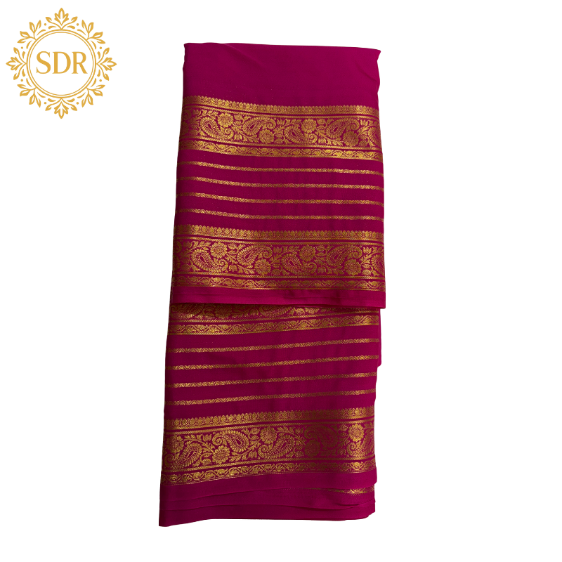 Drape yourself in royal elegance with this exquisite  shade of pink Semi Mysore Crepe Silk Saree, a graceful fusion of tradition and luxury. The saree features a rich, lustrous texture with a beautifully woven  floral patterns. , enhanced by a golden zari border and an intricately designed pallu that exude regal charm. The smooth crepe silk fabric offers a soft, flowing drape, perfect for festive and formal occasions.